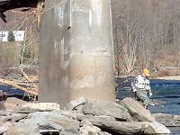 I've fished once since then, and the damage and debris along the shoreline was pretty amazing. Take a look at this picture and notice the tree washed into the bridge abutment. That's quite a ways above that angler's head (Deryn LaCombe).