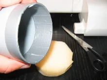 4. Pull the fabric tube back onto the pipe after putting in a foam bottom plug.