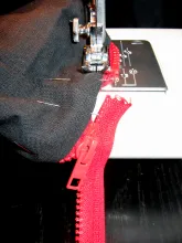5. Fold the top of the tube in and pin on one half of the zipper on the inside.