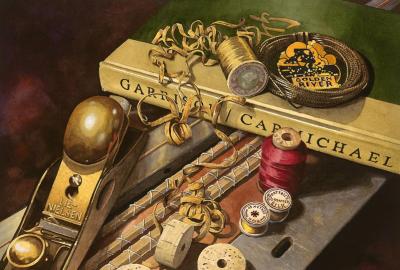 Bob also paints the flies, the gear and fly fishing itself as well as the landscapes surrounding the anglers.