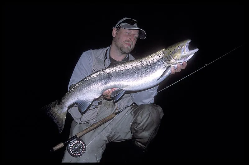 Ole caught this large hen on the last evering of our stay. It weighed in at 6 kilos or 12 lbs., which is way above the average 2 kilos or 4 lbs. of this river.