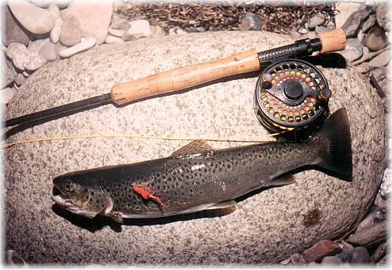 Henning glances with disgust at the brightly colored foam fly shining from the hook rest on my 5 wt.