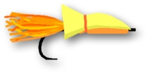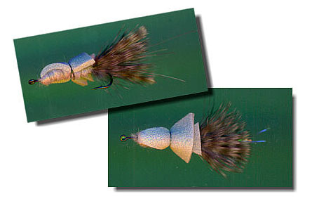 Grizzly Morrisfoam Diver tied with gray foam and Grizzly Chickabou