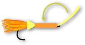 7. Bend back the large foam triangleand tie it down approx. mid shank