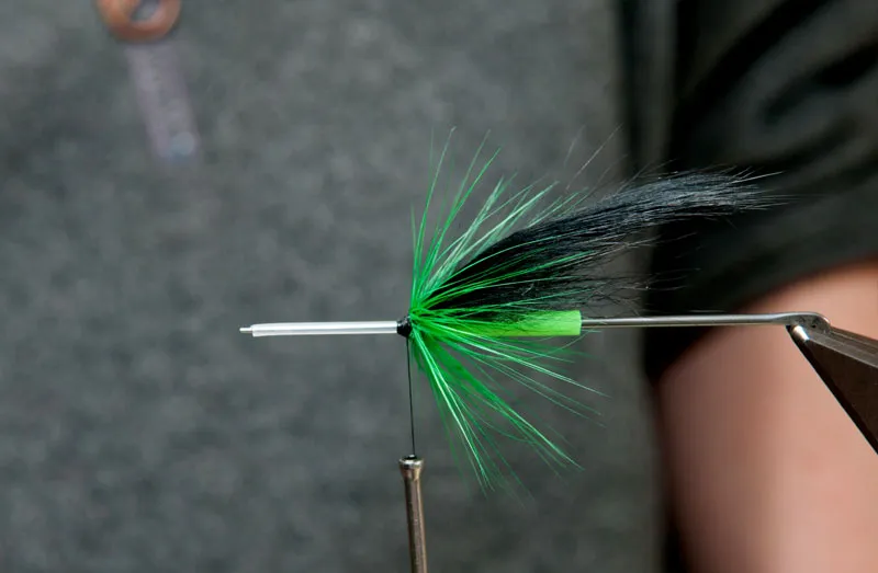 Wrap the hackle 2-3 turns forward, keeping it on top of the wing base and again very compact. Pull back the hackle and take a couple of turns to control it, whip finish and cut thread