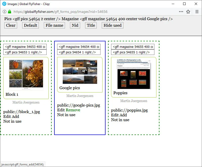 One way of generating the magazine block code is using this dialog, which eases the image selection.