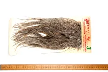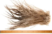 The hen feathers are softer and more rounded both on the neck and saddle, and very popular for soft hackled flies, wet flies and as winging material.